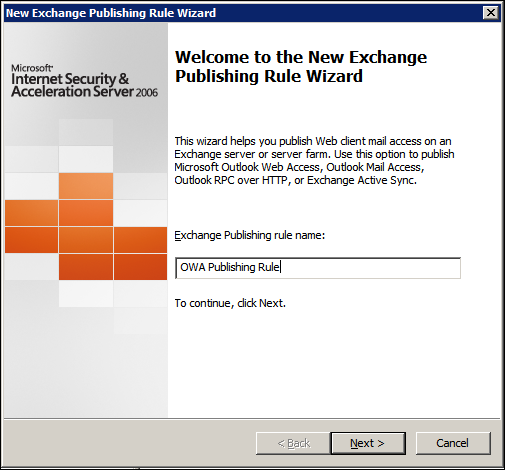 You will be given with a new window, and we are suppose to put a user friendly name for our rule. Lets name it OWA Publishing Rule.